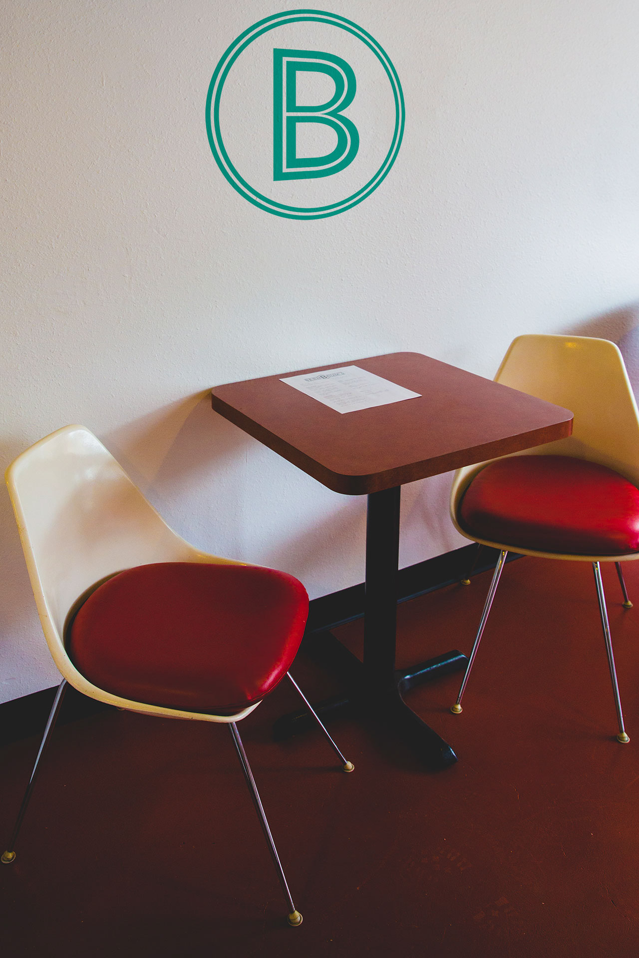 The colors, letter forms, and illustrations created were done by hand and carefully traced to reflect the style of the 1940's and 1950's. The letter ‘B’ stands for the word bagel, but furthermore, the letterform has a double-layered B as it’s also the owner’s joined family name, BernBaum, stemming from Bernath and Baumgardner.