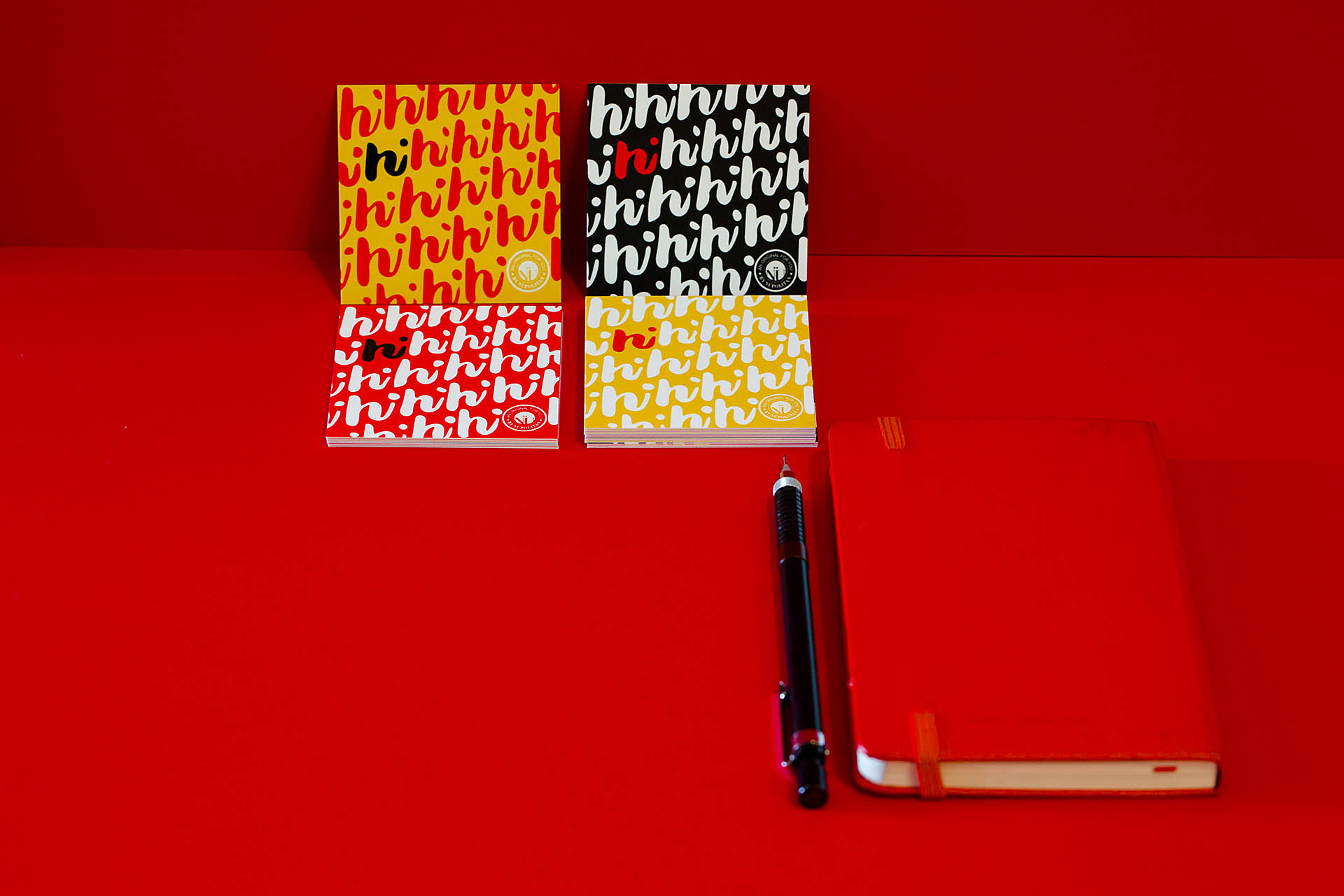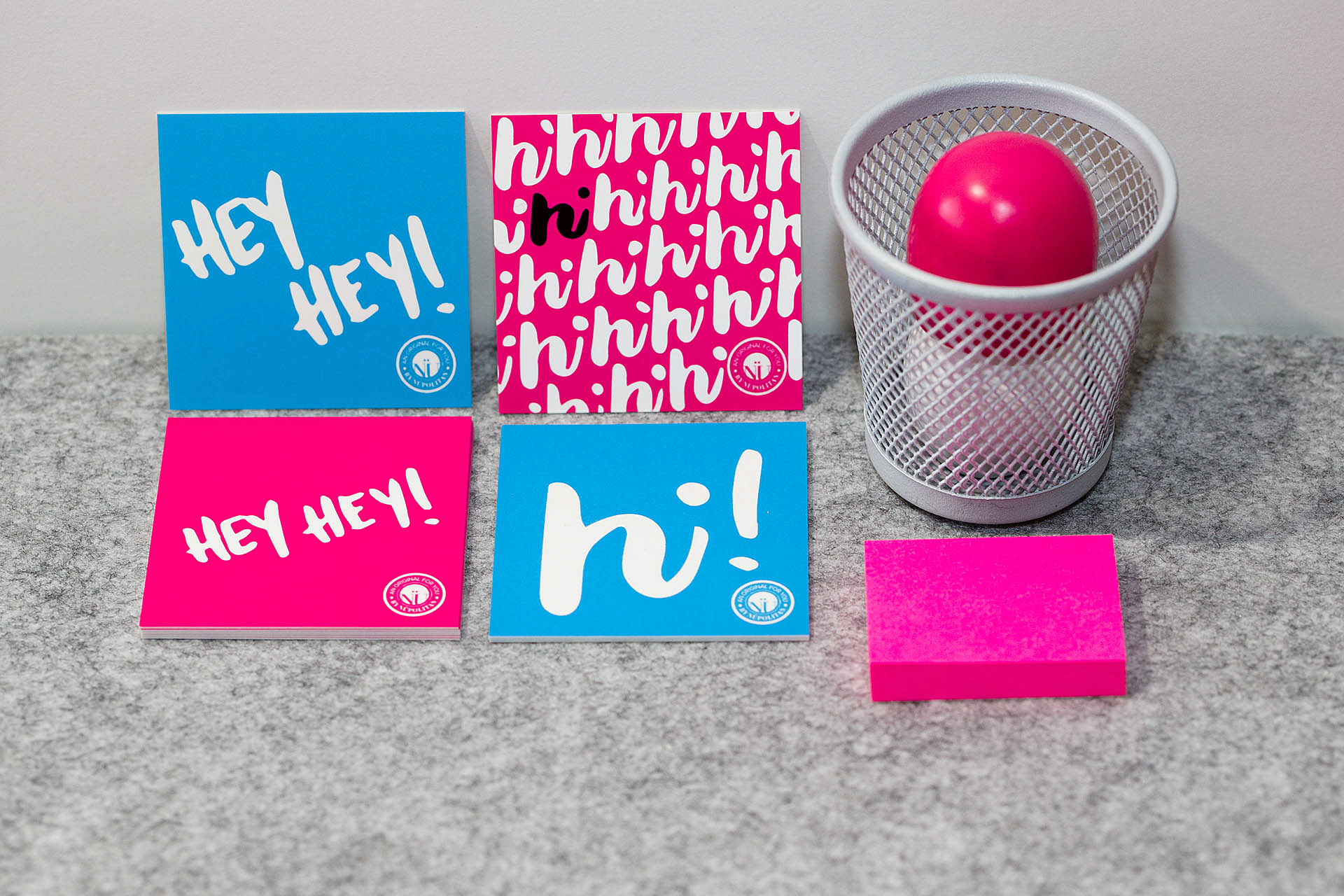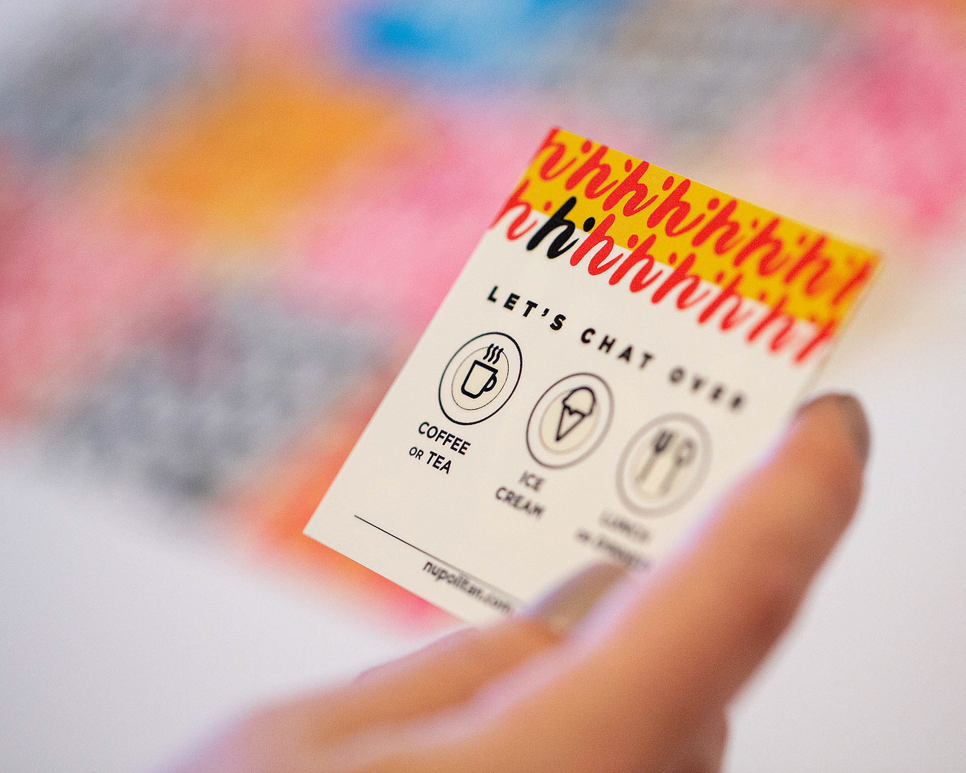 The vivid hues pay tribute to the primary color palette used by graffiti artist Keith Haring and pop artist Roy Lichtenstein. These cards call attention with a loud, simple, and friendly visual message.