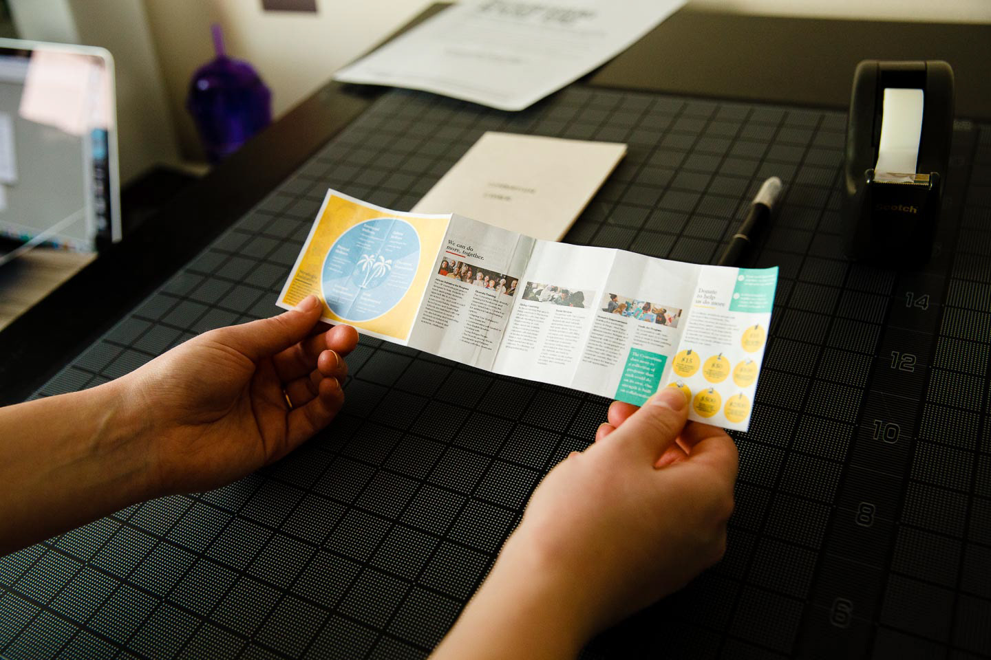 The layouts of the pages are designed to interact and adapt as the document is folded and unfolded. The final page has the ability to stand alone and provides pertinent information about donating and an informational graphic giving a quick overview of the Consortium’s mission.
