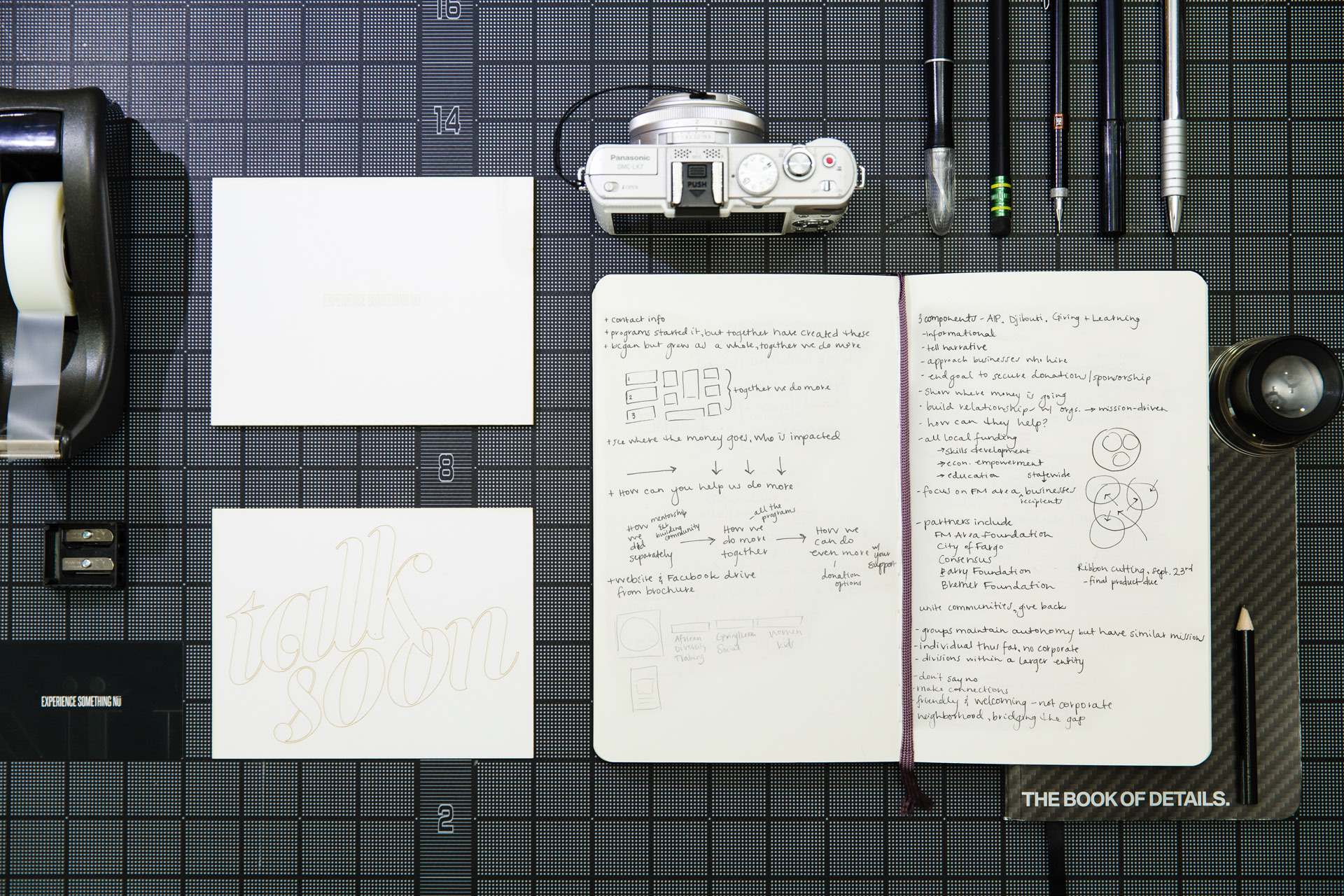 Notes and sketches for key points and page layouts