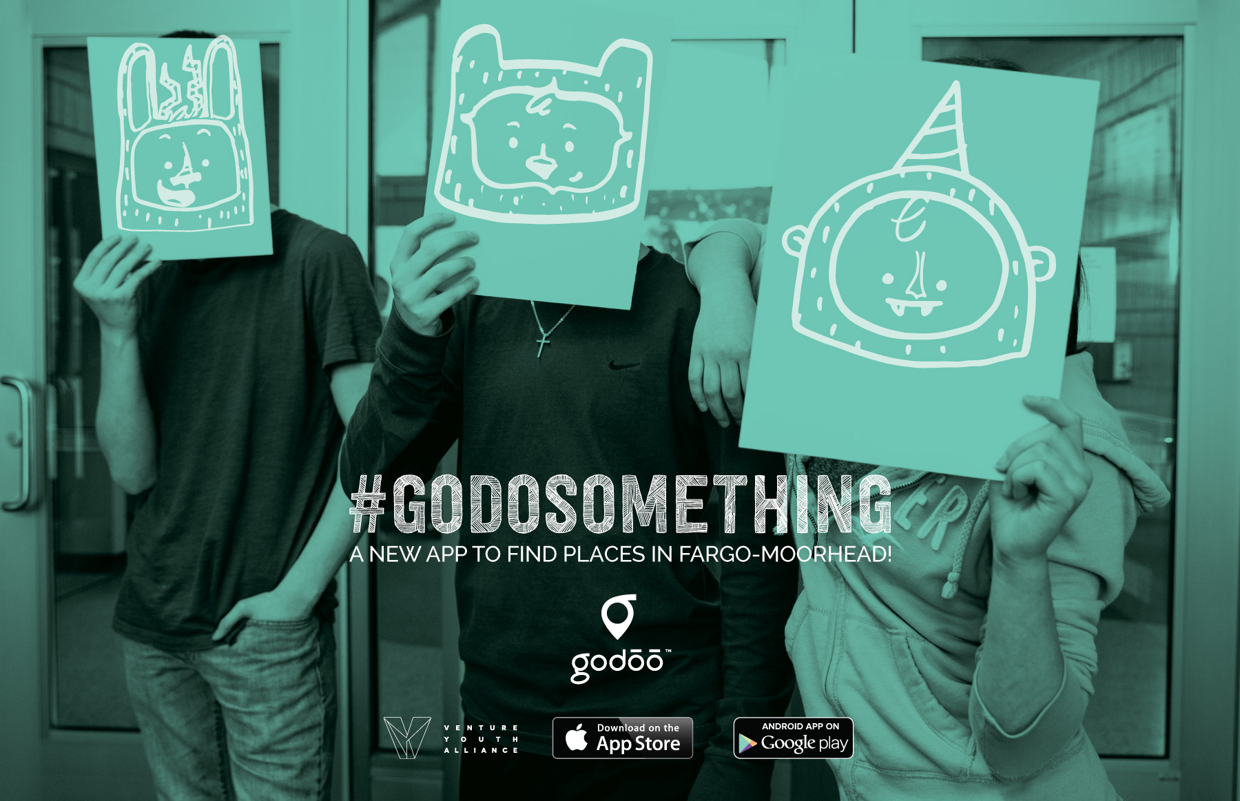 The other version, targeted to Fargo-Moorhead youth, focused on expressions, or feelings, by utilizing illustrated characters in place of youth identities. Along with character utilization, an emphasis was placed on the hashtag instead of the more literal new app announcement.