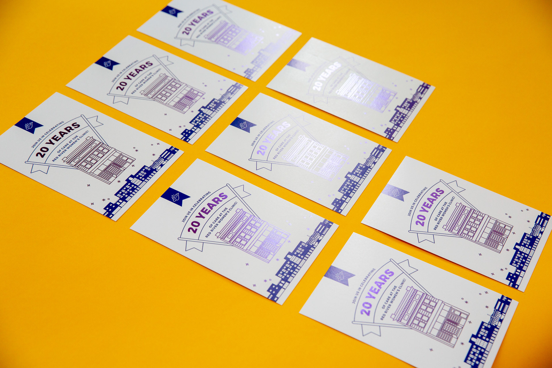 The Red River Women’s Clinic hosted its 20th-anniversary party in Fargo in July 2018 and reached out to us to design a simple, yet flashy invitation to mail out to friends of the clinic.